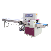 环保餐具包装设备三伺服枕式包装机采用皮带进料,人工投料,自动感应,有料走膜包装,无料等待,不浪费包装膜,复合膜与牛皮纸膜共用,包装机功能强大。